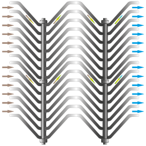 2Â÷ ó¸® °úÁ¤¿¡¼ ¾à¾×(¾ËÄ«¸®°ø±Þ¼ö)¿Í ÃæºÐÇÑ Á¢ÃËÀ» À§ÇÏ¿© ¸öüÀÇ Áß°£ºÎ¿¡ ÃæÁø¹°À» ³»ÀÔ½ÃŰ¾î ¿À¿°°ø±â°¡ Åë°úÇϵµ·Ï ±¸ºñÇÏ´Â ÃæÁø½Ç°ú ¾à¾×(¾ËÄ«¸®¼ö)ºÐ»ç ¼ö´ÜÀ» ¼³Ä¡Çϸç ÃæÁø½ÇÀº °ÝÀÚÇü»óÀ¸·Î °ÝÀÚÆ²À» ±¸ºñÇÏ¿© °¢°ÝÀÚ½ÇÀ» Çü¼ºÇÏ°í °ø±Þ¼ö ºÐ»ç ¼ö´ÜÀº °¢ °ÝÀÚÆ²·Î ºÐ»çÇÒ ¼ö ÀÖµµ·Ï °¢ºÐ±â¶óÀÎÀÇ Çϴܺο¡ °¢°¢ ³ëÁñºÎ¸¦ ±¸ºñÇÏ¿© °¢ °ÝÀڽdz»¿¡¼ µ¶¸³ÀûÀ¸·Î °ø±Þ¼ö¸¦ ºÐ»çÇÒ ¼ö ÀÖµµ·Ï µîºÐ¹è È¥È ¼¼Á¤ ¹æ½Ä À̾î¾ß ÇÕ´Ï´Ù. ¿ø°ø±â À¯ÀÔ¶óÀο¡´Â »óºÎ¿¡ À§Ä¡ÇÑ ¾à¾× °ø±Þ¼ö(¾ËÄ«¸®¼ö) ºÐ»ç±¸ÀÇ ÇϹæºÎ¸¦ Á÷°æÀÌ Á¼Àº Åë·Î·Î Çü¼ºÇÏ°í ±× ÇϺο¡ È®»ê µÇµµ·Ï ³ªÆÈ°ü Çü»óÀ¸·Î È®»êºÎ¸¦ Çü¼ºÇÏ¿© ±Þ¼ÓÈ¥È ¼¼Á¤ÀåÄ¡°¡ ¼³Ä¡µÇ¾î¾ß ÇÕ´Ï´Ù. -