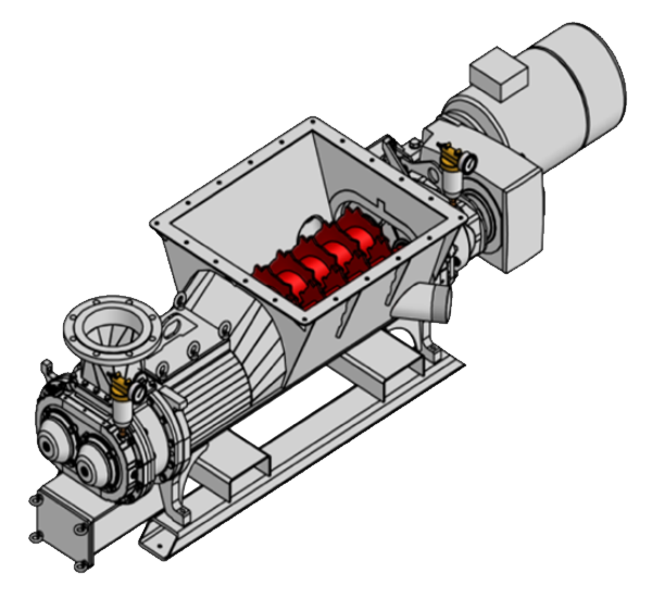 - It is a kind of twin-screw conveyor with knife vane which could cut solid matters into small pieces, then mixing it with injection liquid to make adjustable feeding of constant flow rate without any noise and pulsation.